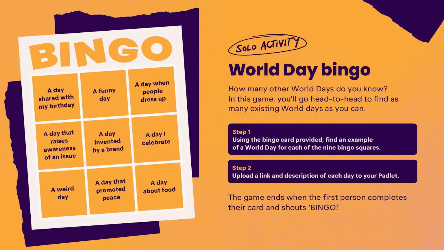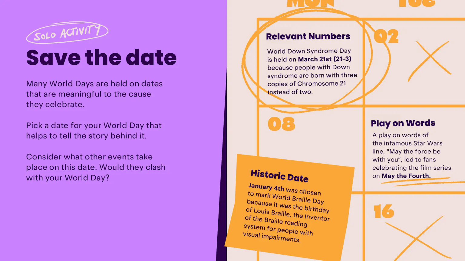 Learners will take a trip around the globe, to discover some more World Days, and the social campaigns they’ve inspired.