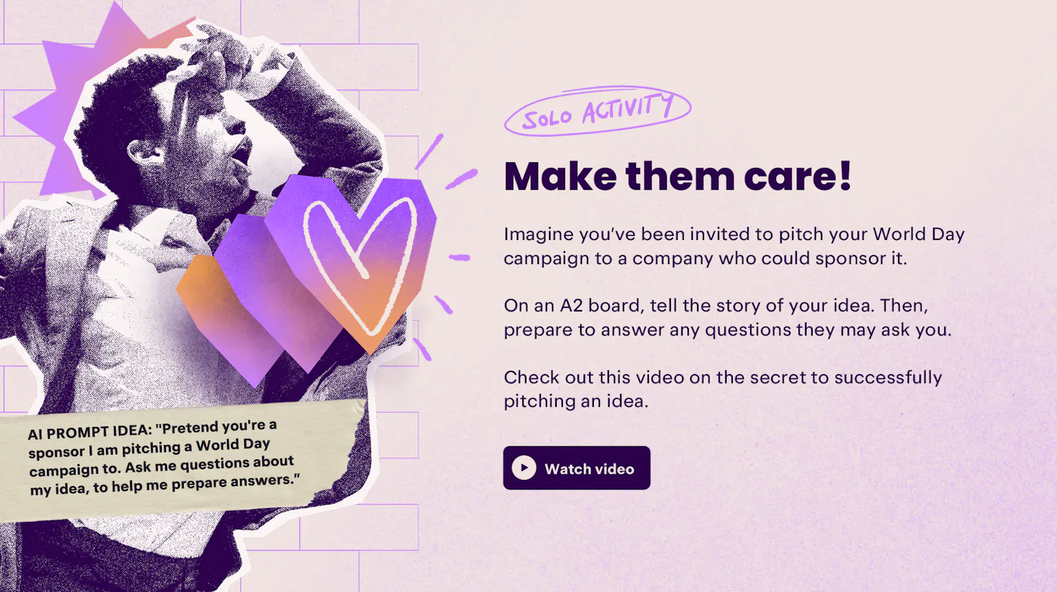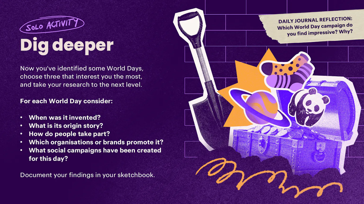 For your day to make a difference, learners will need to convince people to support it. In this part of the challenge, they’ll create a social media campaign to get idea out of sketchbook and into the world