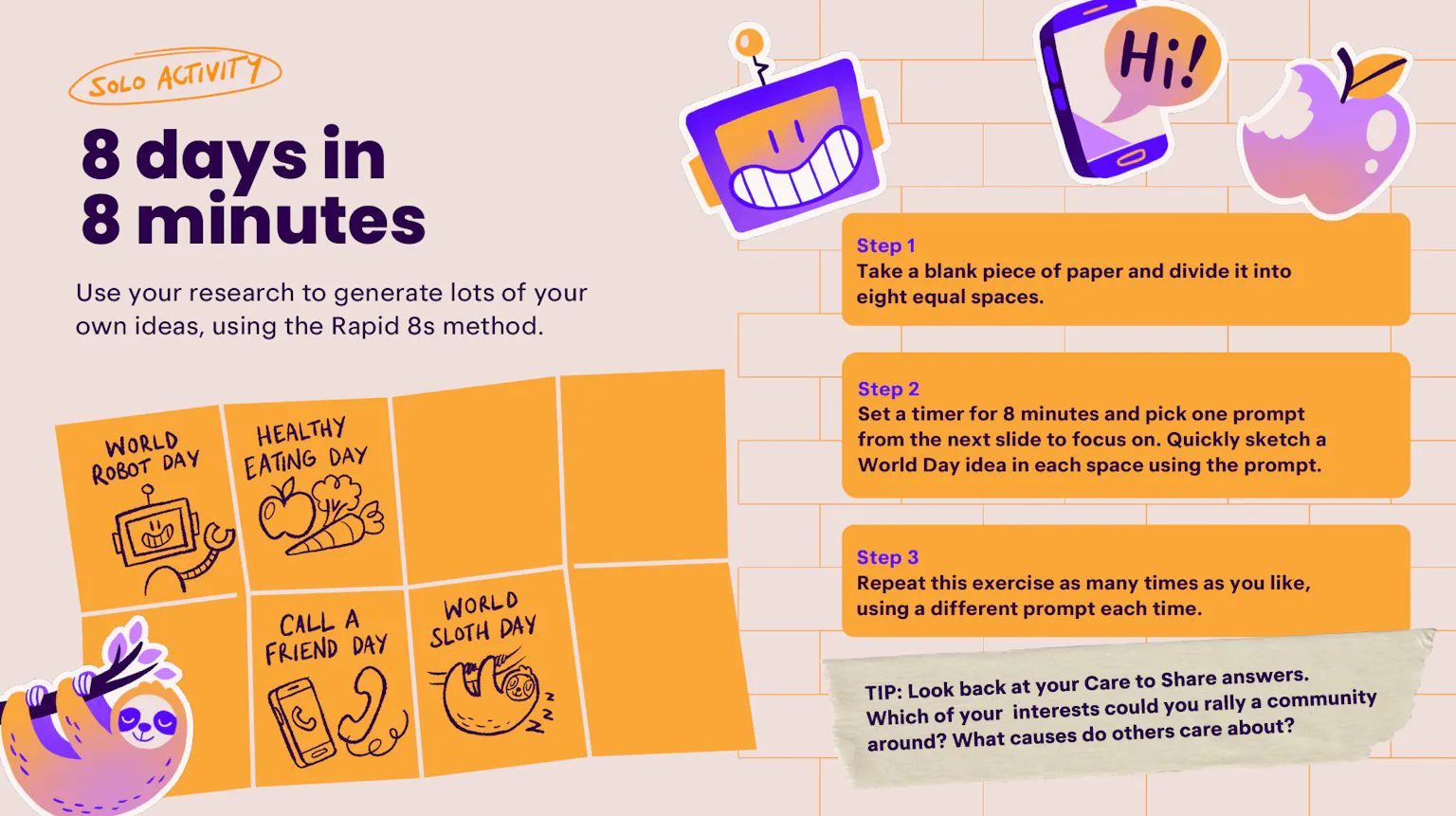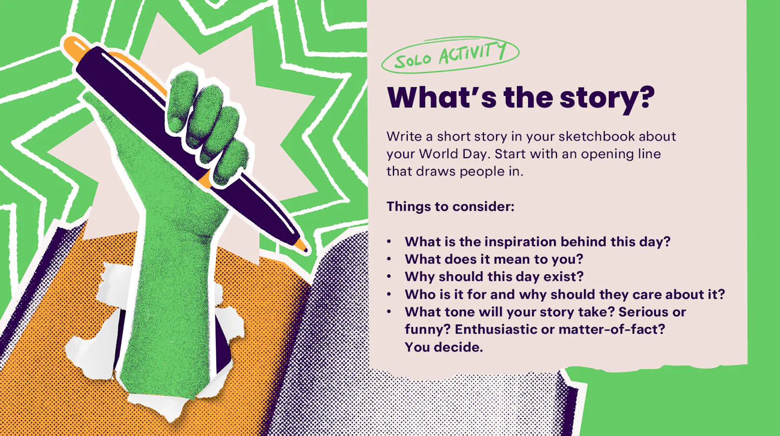 After exploring existing World Days and researching the topics that mattered most to them, learners will create their own idea for a World Day to celebrate a cause, a person, or something that brings joy.