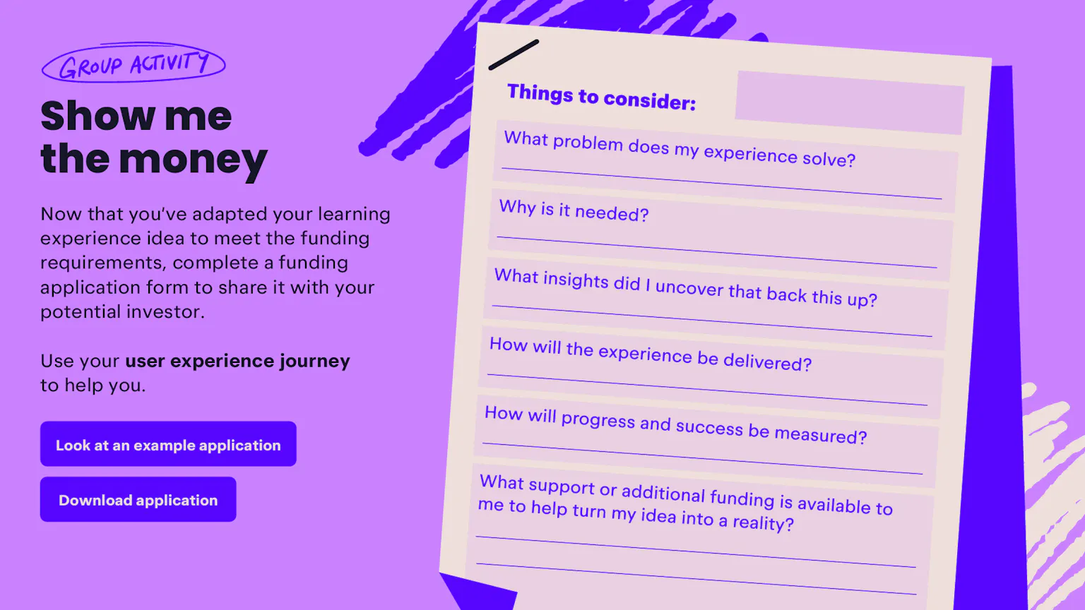 Learners will explore how to turn their learning idea into a real experience by identifying the funding needed to cover resources and materials.